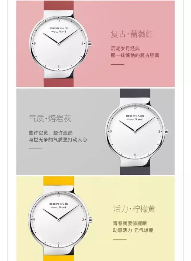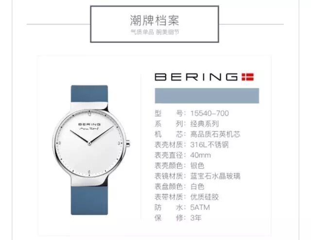 虽然成立仅仅5年时间,凭借着简约大气的设计,优异的材质,绝佳的性价比,白令(BERING)受到了消费者的热情追捧,在欧美以及全球市场的表现惊艳,销售屡创新高,截止2015年6月在全球52个国家有近6000家门店,成为近年全球成长速度最快的腕表品牌。