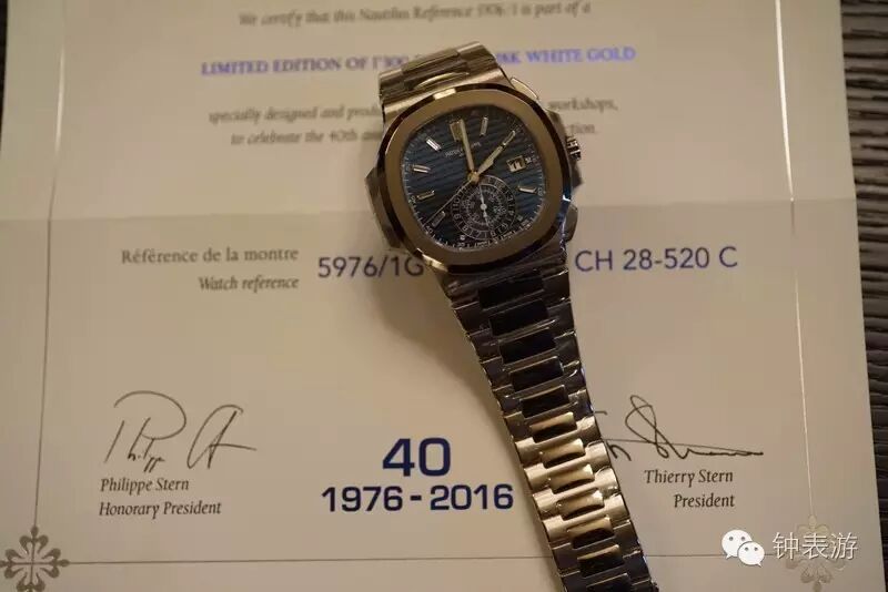 1976-2016年的四十周年之际,百达翡丽特别制作了两枚限量纪念款Nautilus鹦鹉螺腕表。