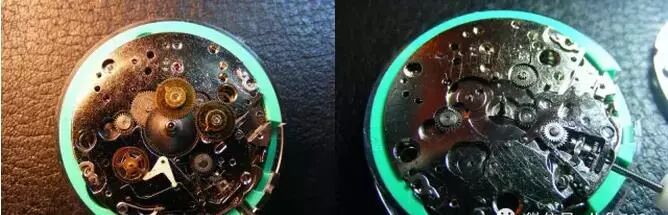 然而上海7750机芯游丝因为材质的问题导致柔韧性不高。在剧烈振动下容易变形,一旦游丝变形,无论你怎么上链,怎么二次校准,整个机芯都是走不准的,唯一的方法就是换游丝。这也是为什么任何一家钟表行,维修多针跑秒机芯,都是800起步甚至更高。所以如果您选择了一款机械的多针跑秒机芯,如果你想让它不那么快寿终就寝的话,真的要好好爱惜。下面让我们对机芯进一步拆解: