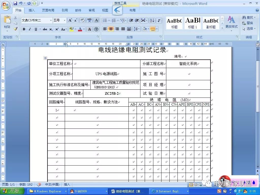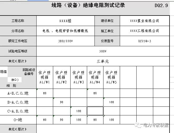 绝缘电阻测试记录在普通的建筑施工中有二种: