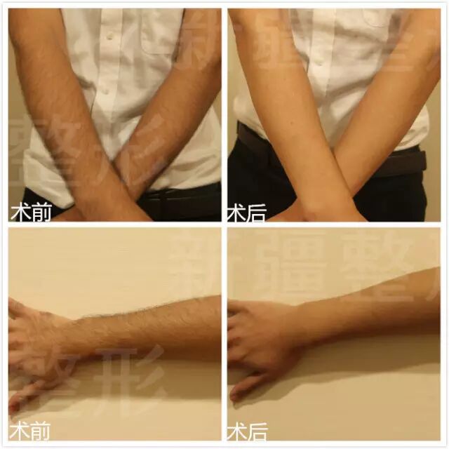 脱毛备皮:脱毛治疗师用一次性刮毛器将手臂上的毛发刮除,就跟平常剃毛器一样。