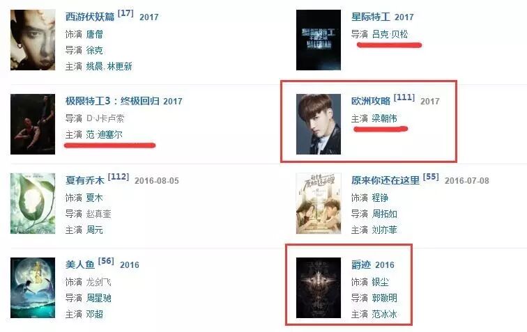 再看看他未上映的作品表,三部人气小说改编的大IP,其中包括郭敬明那大腕群集的《爵迹》;跟梁朝伟合作的《欧洲攻略》;和范·迪塞尔联手的《极限特工3》↓↓↓