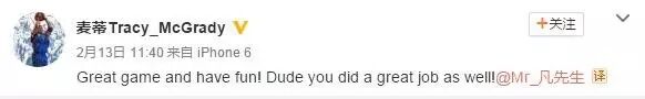 出战美国NBA全明星周末名人赛,麦蒂为他发微博↓↓↓