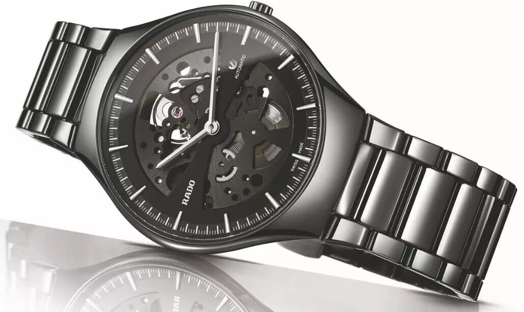 瑞士雷达发展陶瓷腕表已有30年之久,技术上可说是相当纯熟。除了基本的黑,白色,也推出蓝、绿或巧克力等不同颜色的表款。不过若要镂空,就应该看这款黑色的True Thinline真薄系列镂空腕表。以镜面一般抛光的表壳,表带表现出陶瓷独具的美丽和漂亮之外,触摸的质感也很温润。机心机板采镀黑处理,包含12点钟方向的摆轮,与腕表外部的颜色相呼应所搭载的自动上链机心虽非超薄,却也让腕表达到仅7.8毫米的厚度;加上陶瓷材质轻巧的特质,佩戴起来自然不会造成手腕的负担。