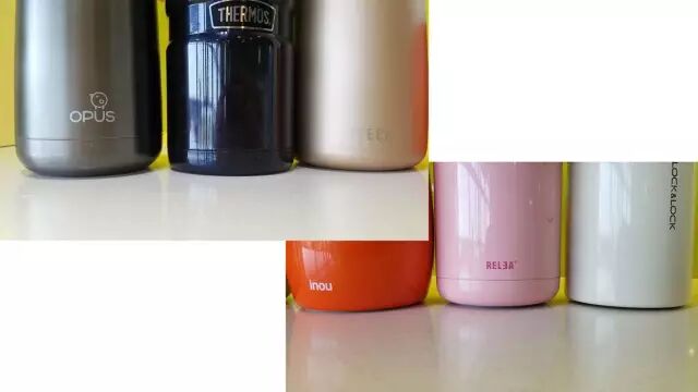 2,杯身底部的接缝线,可以看到其中opus,物生物以及膳魔师的有一圈接缝线,这是因为产品在内胆组装的时候需要预留位置,后期无法处理,但是反观YEEHO,LOCK&LOCK以及inou属于杯身无缝,其中LOCK&LOCK由于杯身是直的,所以本身不存在接缝,而YEEHO只能焖烧杯的底部弧线大,接缝肯定属于安装好之后打磨处理了,才会有如此完整的杯身效果,成本更贵。