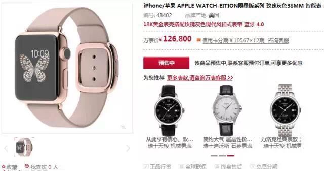 其中最贵的那款APPLE WATCH-EITION限量版系列玫瑰灰色38MM智能表,价格高达¥126,800。。。