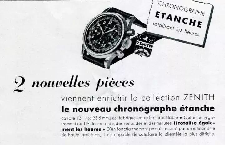 我们在一张1940年代广告里,发现了真力时计时腕表,足见真力时在计时码表领域里的领先地位。