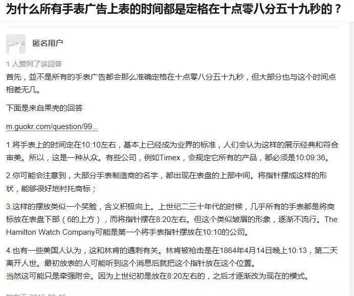 “为什么手表广告照片的时间都是设定在10点零8分?”