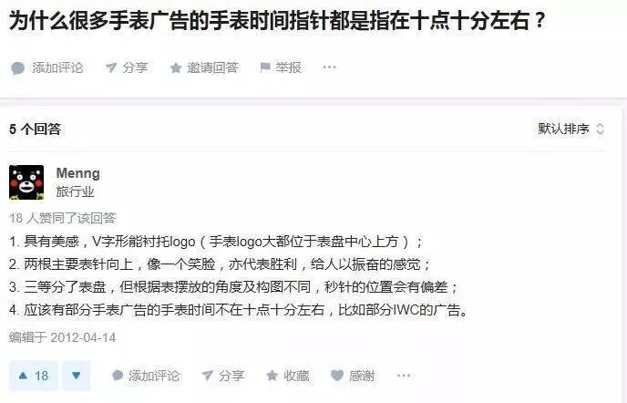 不过这个问题本身就是片面的,答案也有回答者的主观猜测,至少现代腕表里就有时间不是显示10:10的。