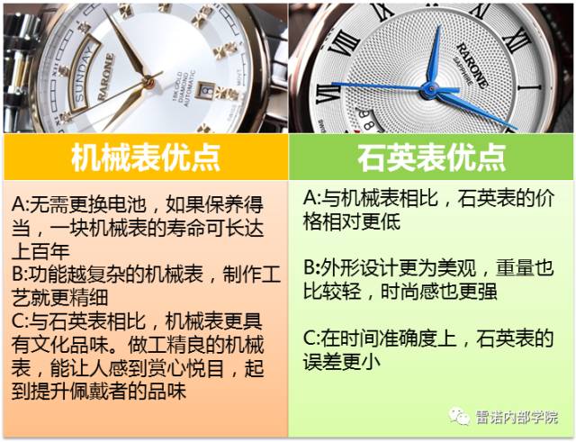 顾客在挑选手表时,由于对手表不了解,常常不知道自己挑选机械表还是石英表好,因此陷入纠结中。就目前来说,一般是女性喜欢石英表多一些,而男性则更偏爱机械表一些。 在回答这个问题之前,我们先来看看机械表和石英表各自的优点。