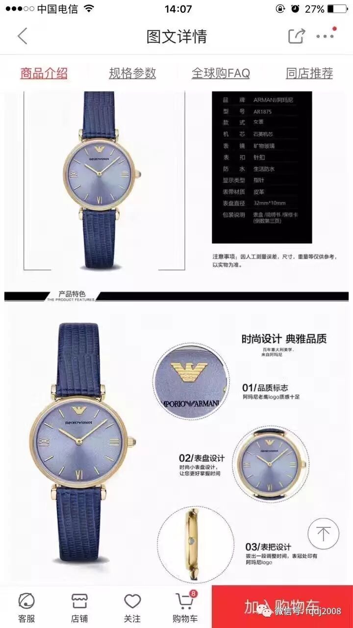 AR1875 女款休闲简约超薄系列!罗马数字间钻刻度面,再搭配蓝色进口高级头层小牛皮+针扣皮带,光彩夺目!表盘直径:32mm,厚度:10mm 。蓝色小清新风十足哦……正品渠道货,保修3年,支持专柜验货。顺丰包邮特价860
