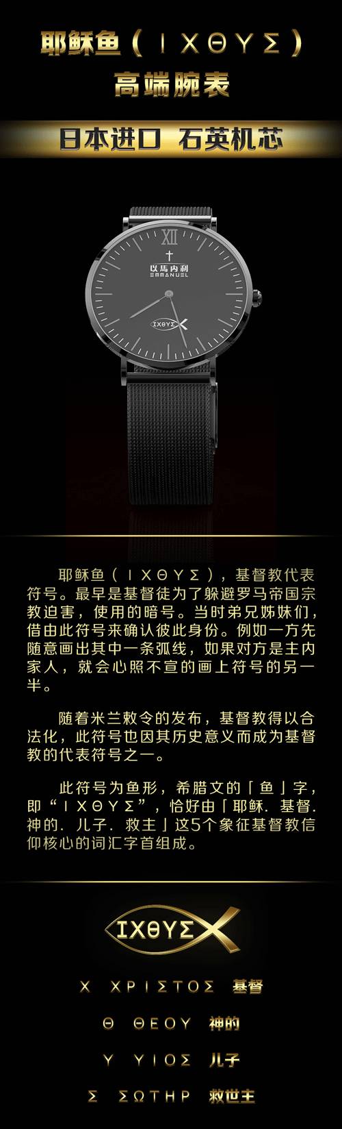 手表机芯分两种,一种是石英机芯,另一种是机械机芯。一般来说,石英机芯,是日本的发明,世界第一,他们的东西做工精细,质量较高,看汽车就知道了,省油耐用。俗话说的好,机械机芯看瑞士,石英机芯数日本。所以,这款鱼系列石英表,我们选择了成本最高的日本原装进口机芯。