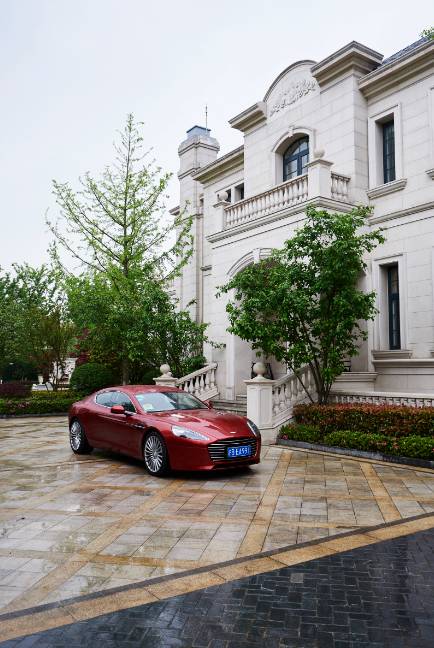不过今天我非常有幸的可以开到一台真正的阿斯顿•马丁,而这台车在阿斯顿•马丁家族中又是非常独特的一位,这就是——Rapide S。因为它是阿斯顿•马丁家族中唯一一款四门跑车。一见到这台车我就被它迷倒了,长长的车头、低矮的车身、修长的腰线、微微上翘的车尾,一切看起来都是那么协调、优雅。Rapide S的车身设计师绝对是一位天才,他把一款四门跑车的车身线条做的像双门跑车那样协调。要不有四只门把我一定会认为它是款双门GT跑车。现在各大跑车生产厂商都在实用性和性能之间做着平衡,所以才有四门跑车这个类别的产生。像玛莎拉蒂总裁,保时捷Panamera也是在这样的环境需求下产生的。不过就外观而言,Rapide S无疑是最美丽、最优雅的。总裁那凶狠外形加上大大三叉戟的车标给人的感觉杀气太重,而Panamera呢太过于德国范了,保时捷把所有的精力都放在性能上,似乎忘记设计外形了,把911拉长就这样草草了事。