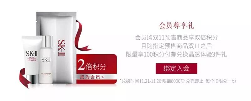 而会员购双十一预售商品享受双倍积分,在双十一购买之后,可限量享100积分付邮兑换体验3件礼。