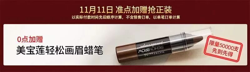 除了秒杀活动,0点购物还加赠美宝莲轻松画眉蜡笔正装,限量50000支。