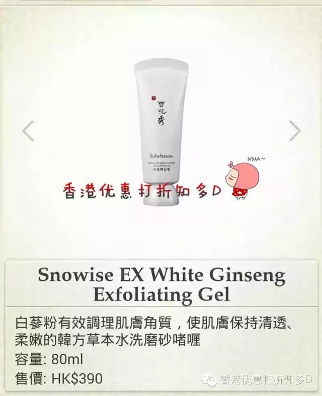 等我把家中囤货都消灭光,就专心雪花秀了,性价比太高了。这种肌肤状态是从未有过的,其他产品无法替代的。我现在的肤质是夏季混合,冬季混合偏干甚至有点儿接近于中性皮的状态,夏天用润燥精华和滋阴水乳就足够了,冬季或者空调房要加一层人参面霜或者晚上来一层与润面膜,仅供参考。保湿滋养又不会油,这种状态很好。所以说想写的比较中肯,我不好说雪花秀真的有多好,也许比它好的东西多着呢,但目前来看,却是最适合我的,性价比也最高的。[本段转自:wenwentiantian]