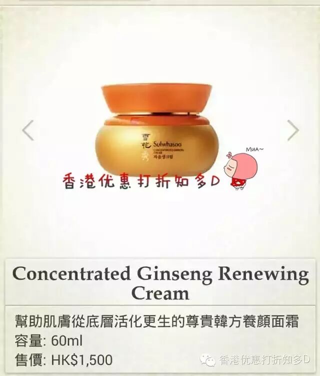 人参面霜是一款滋养的面霜就好比肌肤最保暖最呵护的外套,人参面霜就是一件贴心小棉袄,1500HKD一瓶。贵虽贵,但是D菌认为一百块和一千块的面霜肯定有差别,但是一千块钱和一万块钱的面霜相比,成分我相信不会差太多的哈哈。