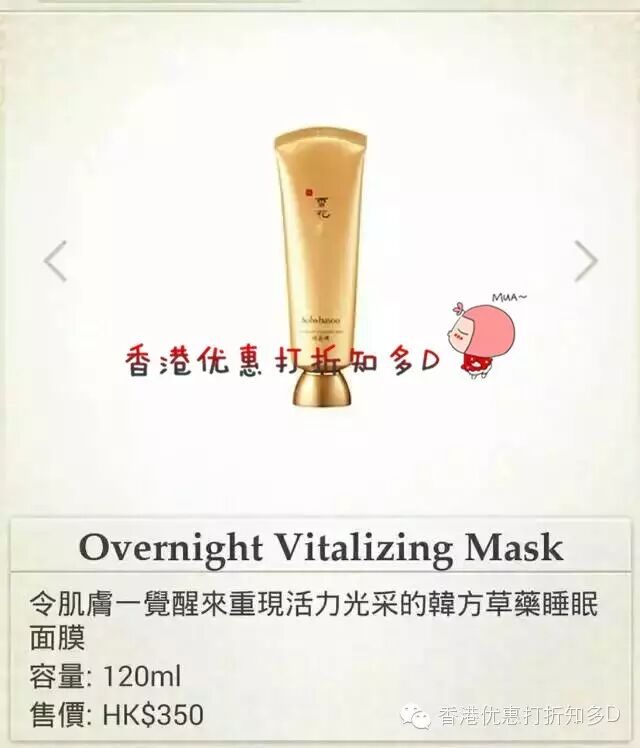 关于睡眠面膜,自从兰芝那款在国内红起来后我用过不下数十种,包括兰芝、牛尔、梦妆、雅诗兰黛的红石榴等等,但一直没有感觉到很惊喜的作用和变化,起初入睡眠面膜时候也是跟风,350HKD一大管,睡觉的时候摸了下脸,感觉面膜都吸收得差不多了,然后睡觉了,本来没想这面膜能有多大效果,第二天早上起来照镜子我真的惊艳了!!!这是我用过那么多睡眠面膜里第一个早上起来后脸上完全不油腻的面膜,不但不油腻,皮肤是哑光平滑还水水嫩嫩的,而且肤色非常均匀,都舍不得洗掉了。