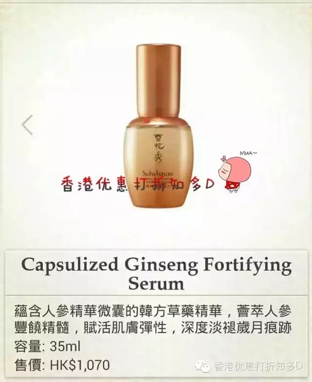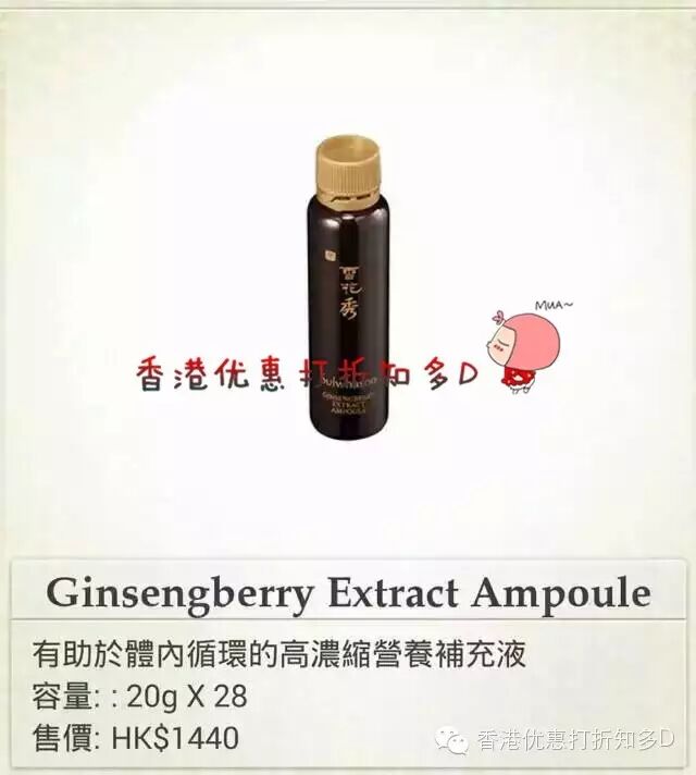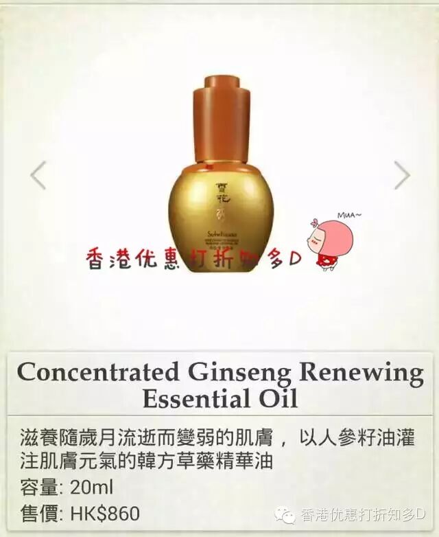 人参精油,20ml,860HKD的价格,最主要还是高丽人参籽提取物源自四年才熟成的韩国人参, 一年一次收成,金贵的道理就在这。