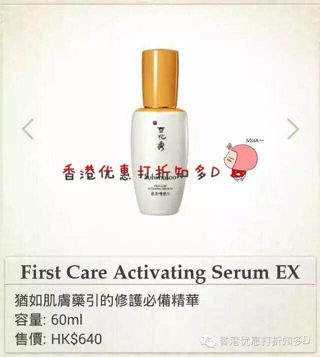 虽然说的很官方,但是每一句都对!当你舍得花640HKD买一瓶打底精华时,你的脸色就开始越来越回复本色,一天比一天明显感到脸有了亮光。这一瓶60ml,我用了将近五个月,每次都是瞬间吸收,尤其感觉到之后拍水时更容易吸收了水分。