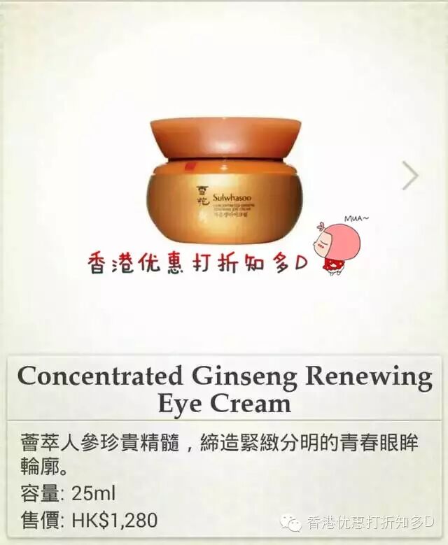 珍雪眼霜真的太好用!韩妆的眼霜几乎都是25ML的,2000HKD,瓶子超级大一个基本都和欧美品牌面霜一样大小,是雪花秀品牌系列中最高端的眼霜了!