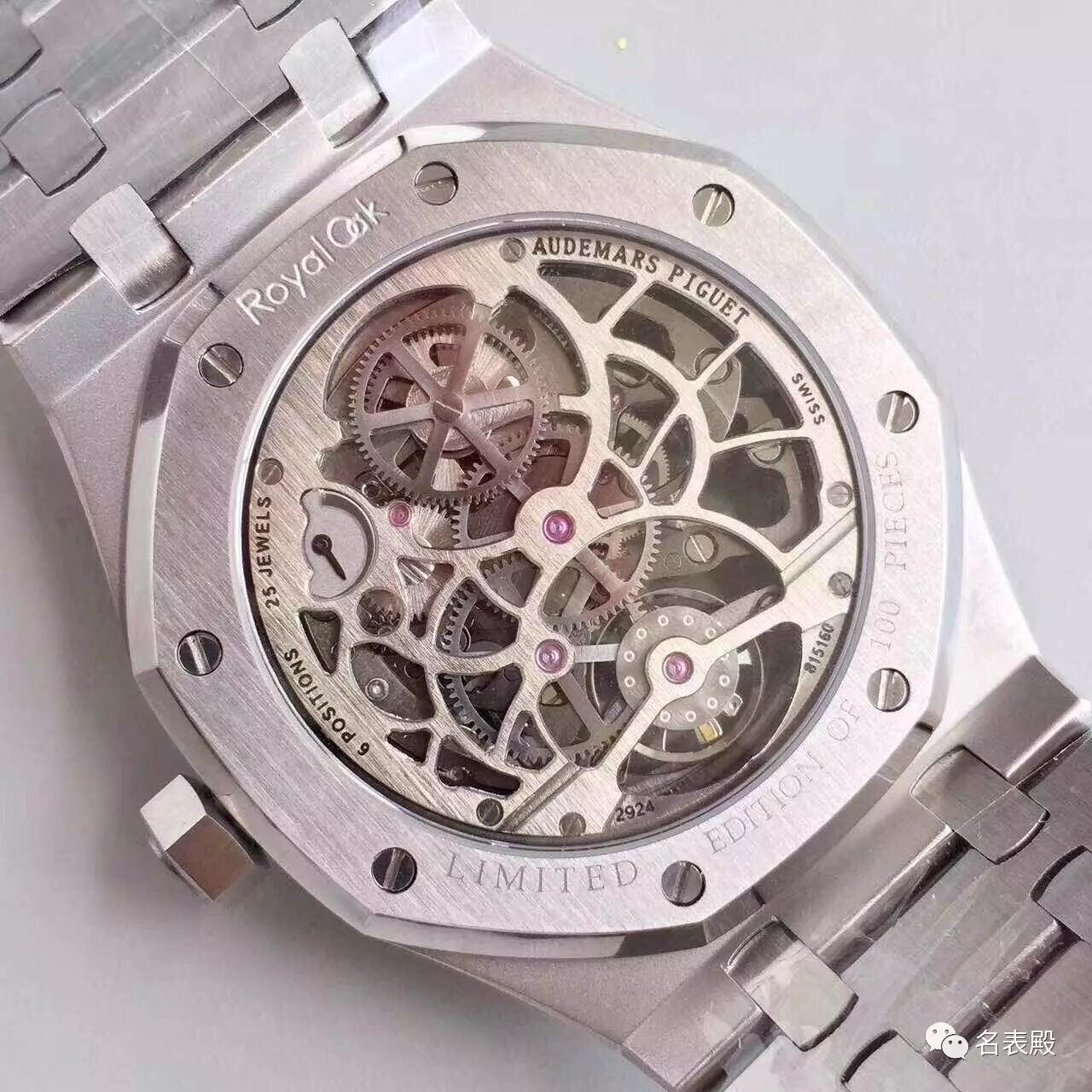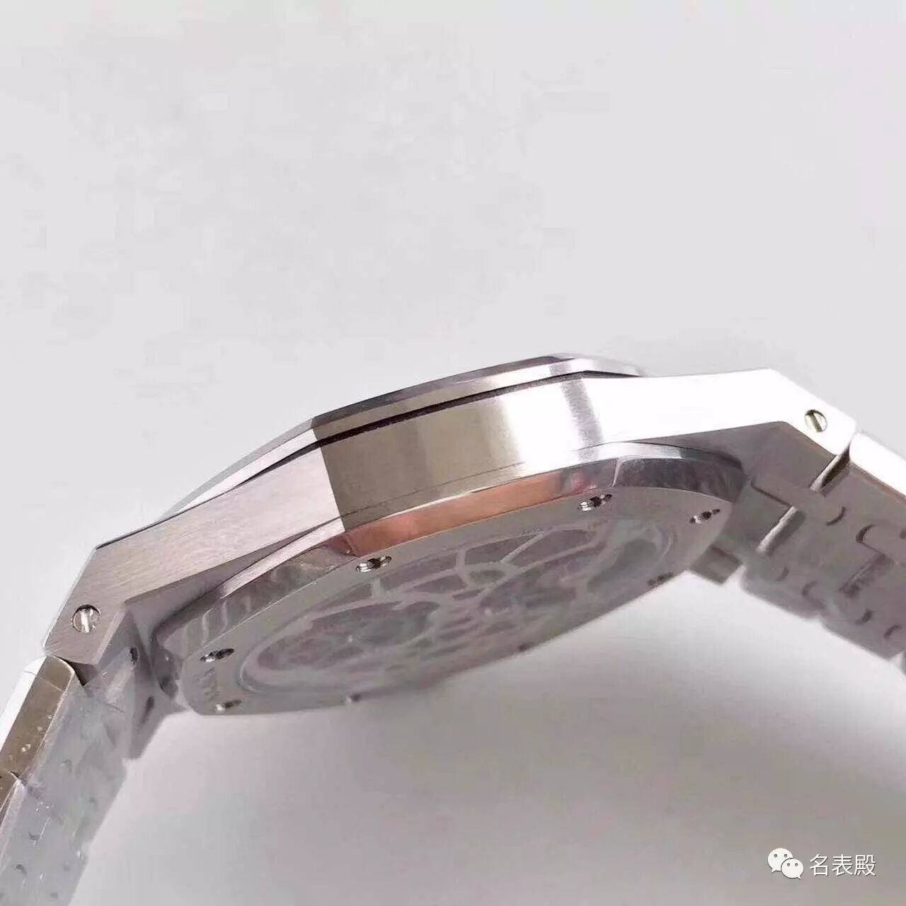 新款AUDEMARS PIGUET【爱彼•皇家橡树】型号26518ST.OO.1220ST.01 《原装直径41mm厚度9.5mm》《特制透空手动上链仿陀飞轮机芯/80小时动力储存/快摆28800摆幅品质达到零返修》[胜利]《壳套/钢带/表扣钧采用市面最强品质》[强]双面釆用防眩蓝宝石玻璃》!完美复刻完美演绎出原装陀飞轮效果