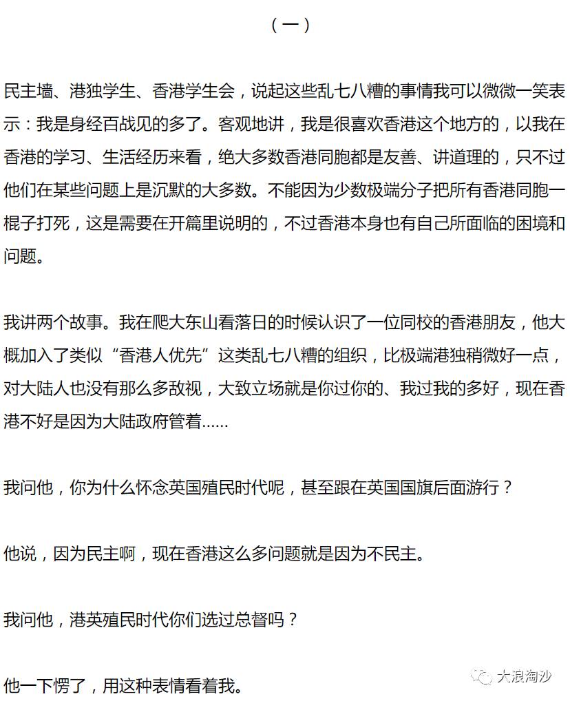 我们再回到香港问题中。《毛选》开篇第一卷第一篇第一句:“谁是我们的敌人?谁是我们的朋友?这个问题是革命的首要问题。”还说过:,把敌人搞得少少的。”很显然,一棒子打死所有香港青年是极其愚蠢的斗争策略。