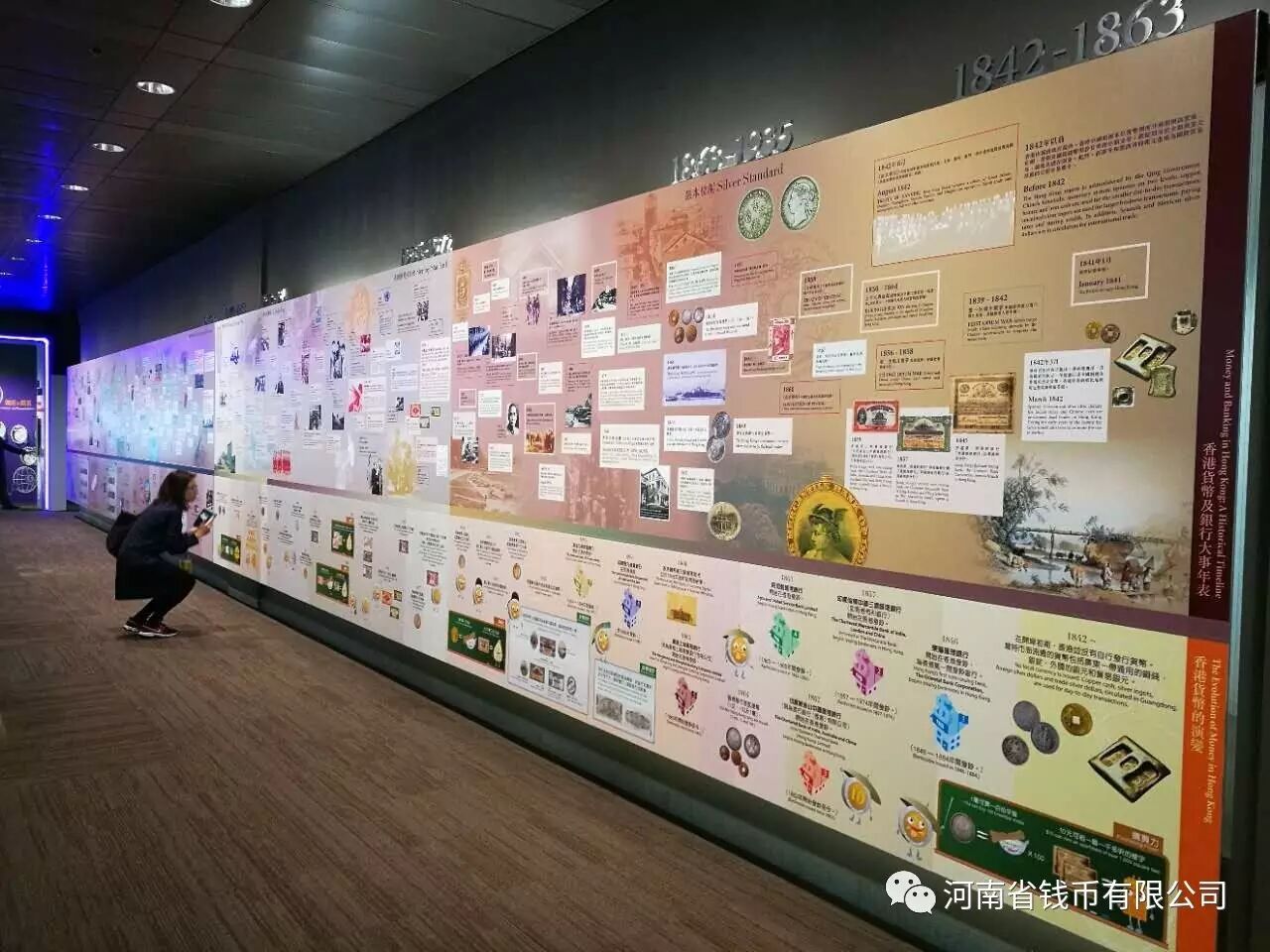 走进展览馆,首先映入眼帘的是一幅巨型历史长廊,许多珍贵的历史资料和图片,图文并茂的记录了香港钱币发展的历史。一点一点看过去,整个人仿佛进入了时空的隧道,跟着钱币发展的脚步感受整个香港的历史更替。