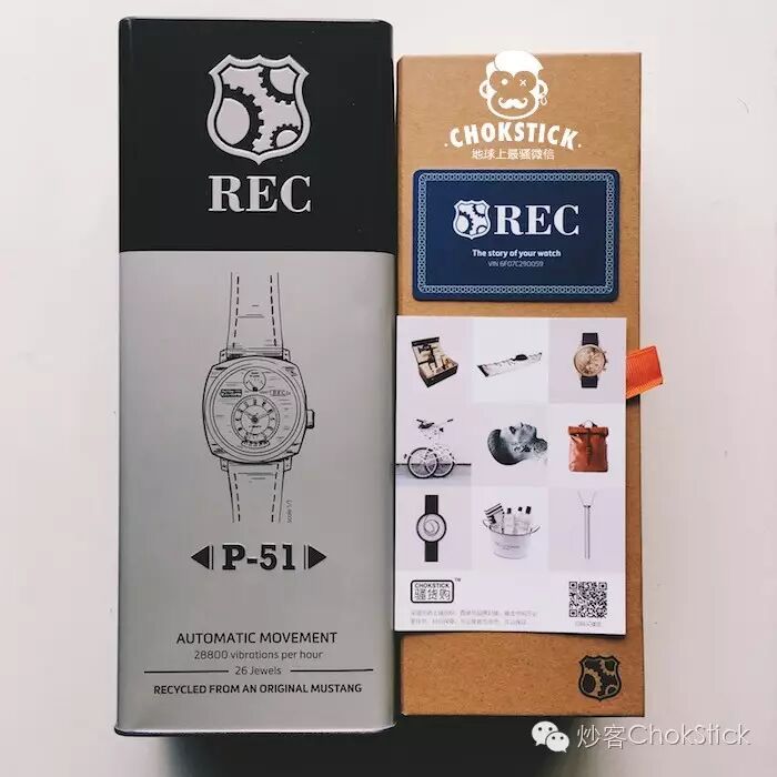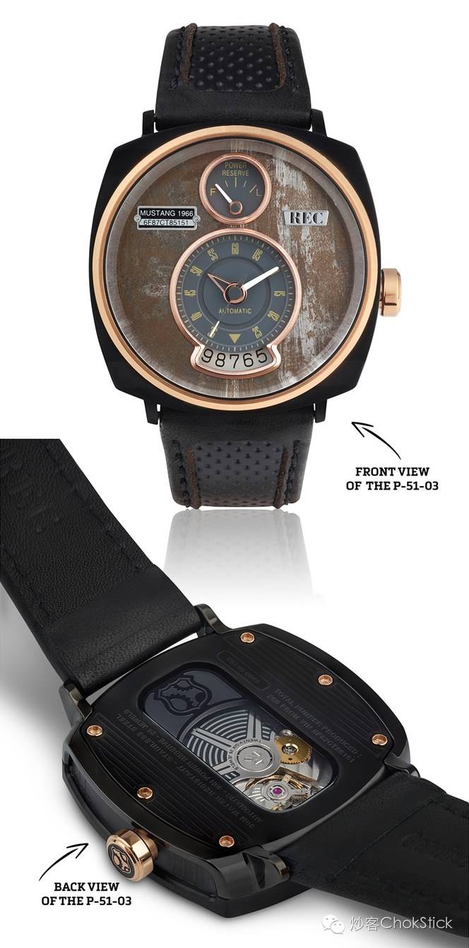 REC 将这款采用 60 年代野马古董车回收钢材制作的自动机械表,取名为 P-51,向世界上第一辆野马概念车致敬。