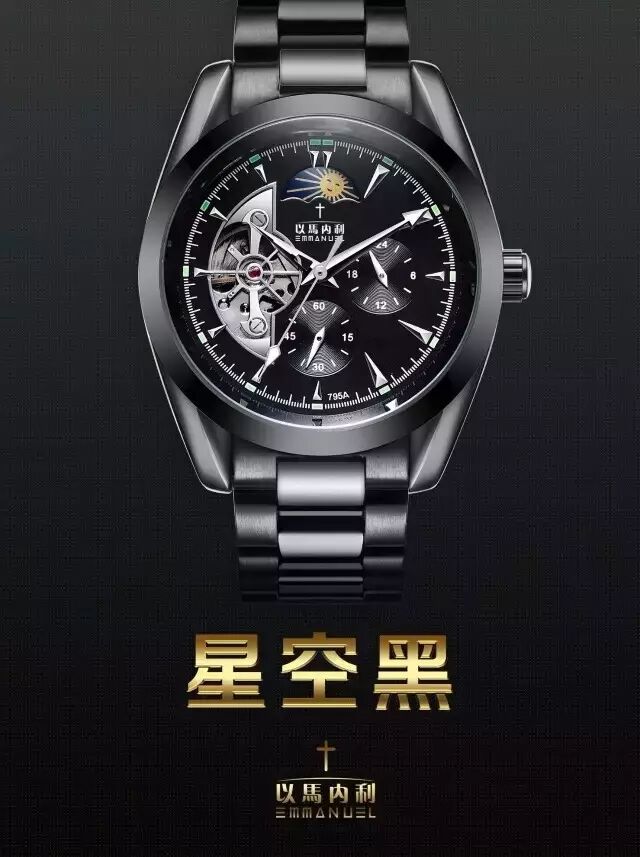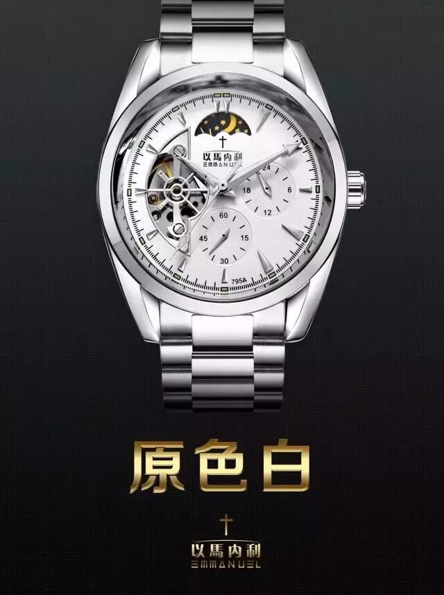 4、神创系列,显示月相。神说,天上要有光体,可以分昼夜,作记号,定节令,日子,年岁。神创系列标志性月相窗口,24小时变幻日月星辰,日日夜夜,以馬內利!