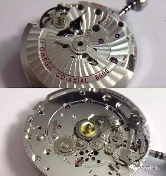欧米茄自产的8500机芯标志了欧米茄重新回归自行设计并生产独有机芯的瑞士钟表制造商之列。提到8500机芯就不得不提到同轴擒纵,擒纵装置可以说就是机械腕表的心脏,然后欧米茄就在同轴擒纵技术上不断发力,包括今天的8500机芯。而新的8500机芯据说是由欧米茄自行设计并生产的,共202个元件。和2500机芯相比,8500解决了2500频繁偷停的问题,在擒纵轮方面进行了比较大的革新。由原来的双功能轮改为三功能轮,同时也为机芯节省了大约13%的空间,有利于机芯的进一步改进。虽然擒纵轮有所更新,但8500的仍然坚持采用被认为是与同轴擒纵机构最为契合的25200次/小时的摆频。