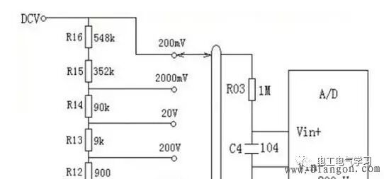 万用表测量电压、电流和电阻功能是通过转换电路部分实现的,而电流、电阻的测量都是基于电压的测量,也就是说数字万用表是在数字直流电压表的基础上扩展而成的。