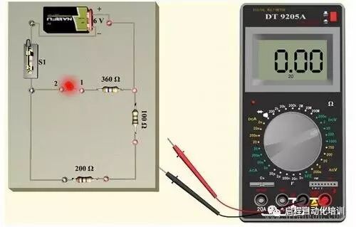 2、测量方法:万用表应与被测电路串联。应将电路相应部分断开后,将万用表表笔接在断点的两端。红表笔应接在和电源正极相连的断点,黑表笔接在和电源负极相连的断点。![]()