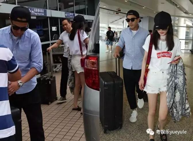 两人在机场手挽手的那股腻歪劲