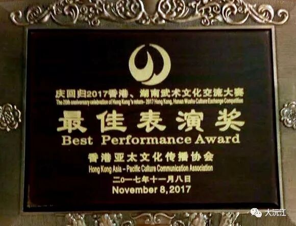 这次交流活动,让博大精深的湖湘武术文化与瑰丽的香港文化交相辉印,为中国的传统文化与香港现代大众体育文化擦亮出新的火花。沅江市武术协会代表团在太空拳、太极拳项目展演中荣获最具特色奖、最佳表演奖。在交流活动期间,代表团全体成员充分发扬了爱国主义和集体主义精神,充分展示了沅江武术人的精气神和时代风采,体现了沅江市武术协会强有力的组织力、号召力和凝聚力,扩大了沅江武术的影响力,提高了沅江市武术协会的知名度。代表团团长张力鑫被香港亚太文化传播协会授予“武术文化传播大使”称号。来源:冷德祥