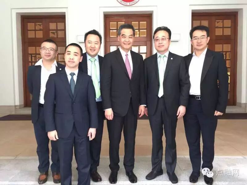 点融网创始人郭宇航(右一)和香港特区行政长官梁振英(右三)合影。