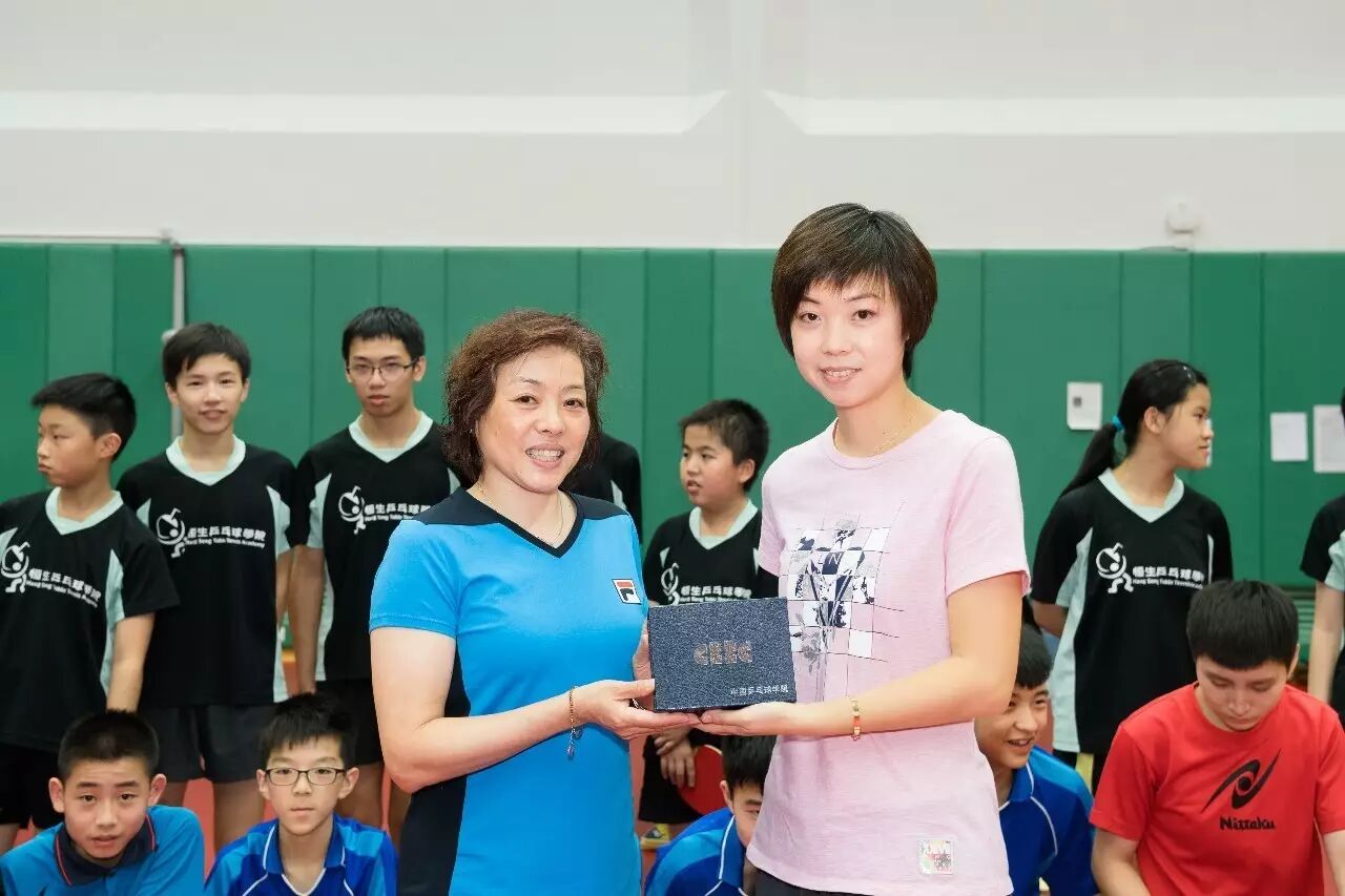 张怡宁代表中国乒乓球学院向香港乒乓总会赠与纪念品