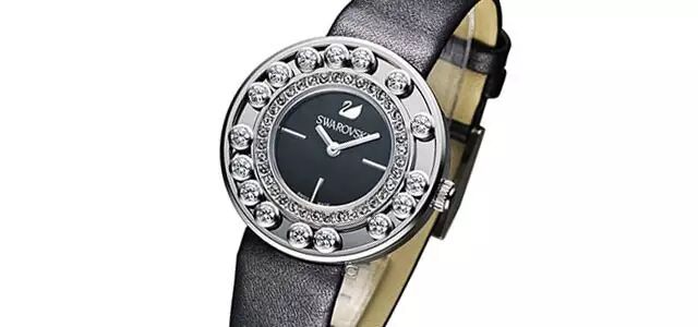 蓝气球休闲时尚满天星镶钻黑色皮带白面女表