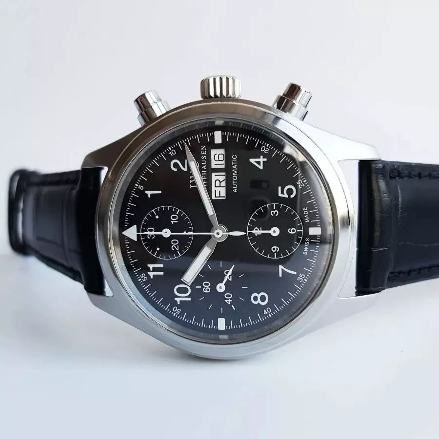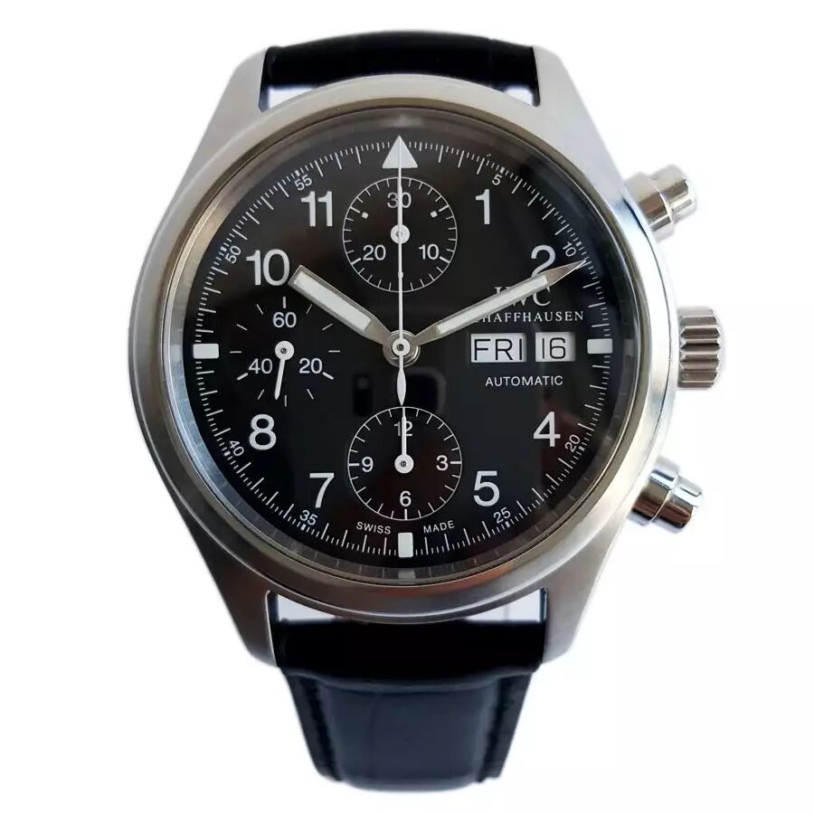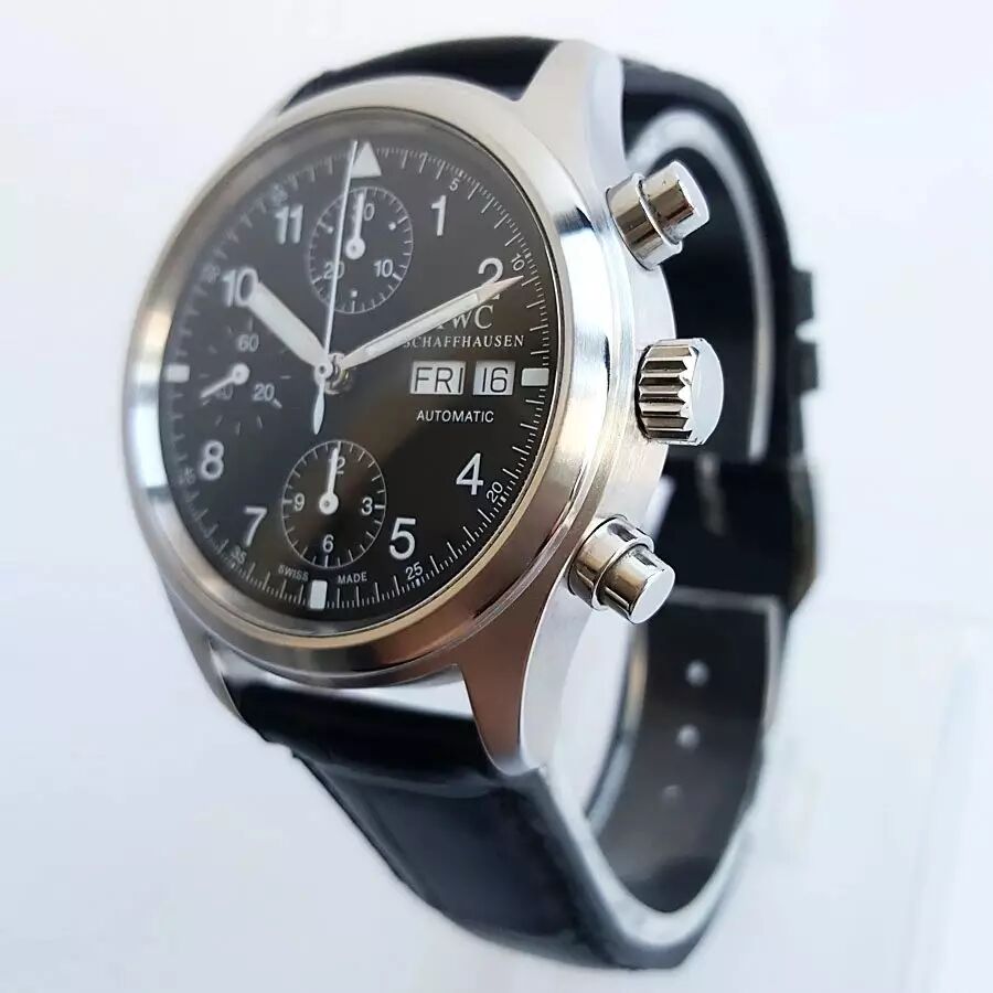IWC万国飞行员系列钢款黑盘双历计时男士机械手表。型号:IW370603!现售价:19800!070717YF01