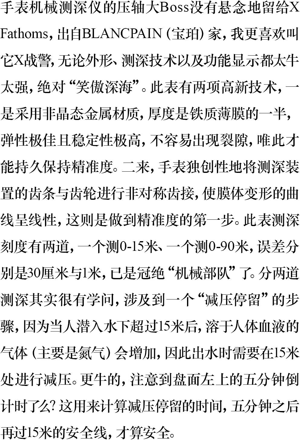 BLANCPAIN(宝珀)XFathoms测深仪表,测深装置拥有两项先进的高新技术,测深精准度极高,其显示也非常周到