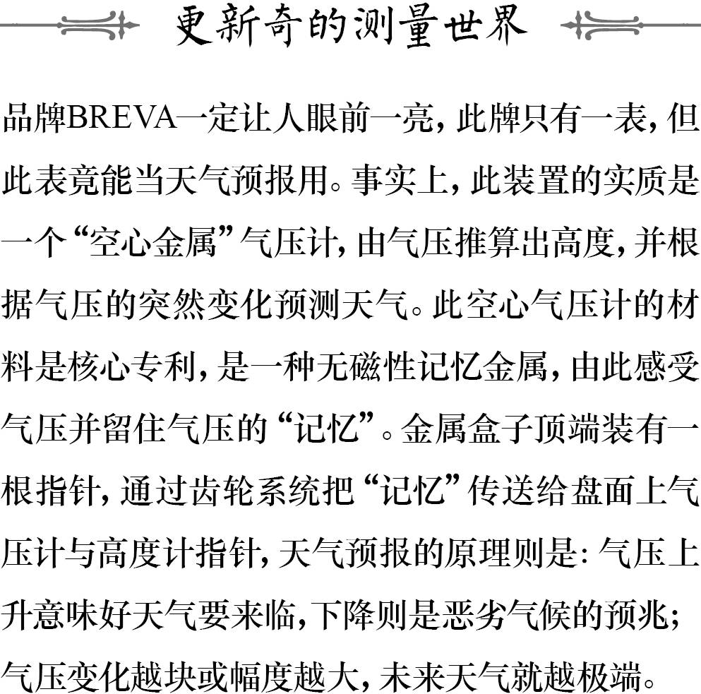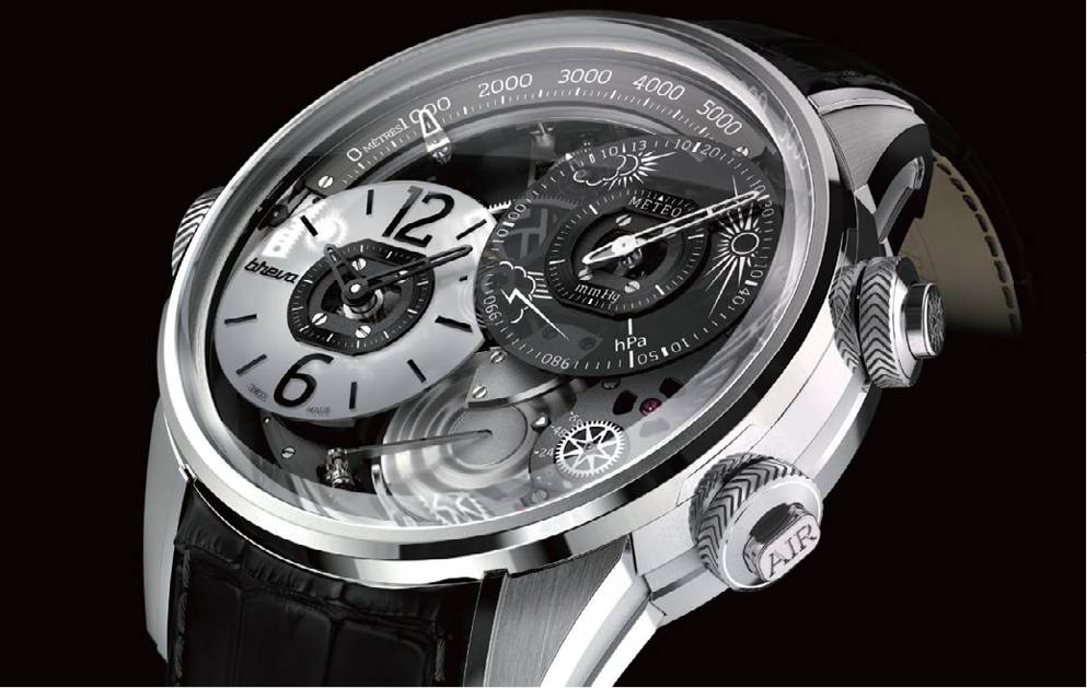 BREVA Génie01腕表内置“空心金属”气压计,并通过传动系统驱动指针显示气压、高度及天气预报