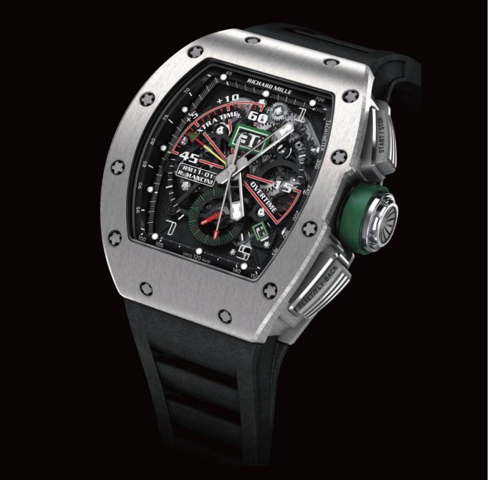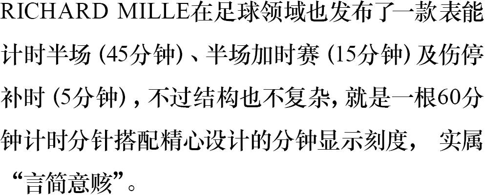 RICHARD MILLE RM11-01计时表能够计算一场足球比赛的半场、半场加时及伤停补时等所有时段