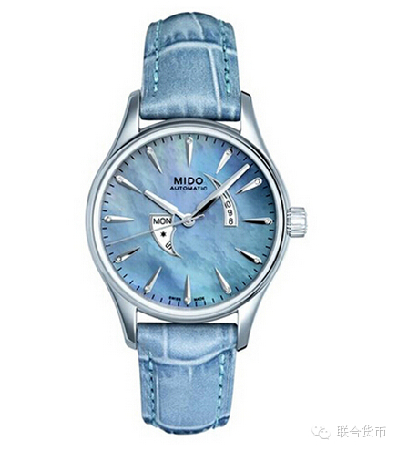 采用ETA 2678机械机芯,精钢表圈包裹着直径为33毫米的精细的蓝色珍珠母贝面表盘,灵感来自于现代艺术主义的标志,夕阳余晖中,克莱斯勒大厦的窗户反射出的光线。蓝色真皮表带配以折叠表口令其更显典雅、女性化。