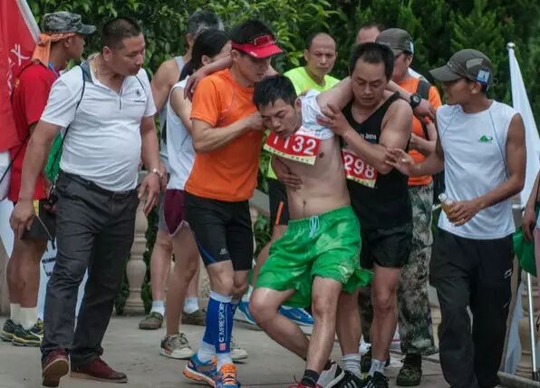 1. 途中如出现眼前阵发性发黑,严重憋气,有窒息感,周身出冷汗呈虚脱状态,立即停止比赛,呼叫救护车。