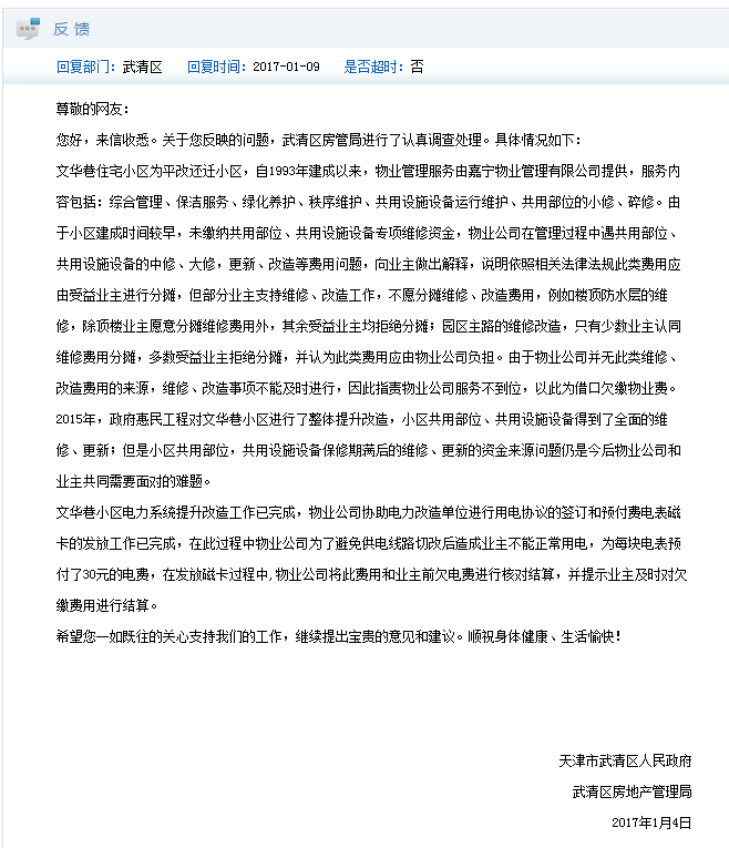 回复部门:武清区 回复时间:2017-01-09 是否超时:否