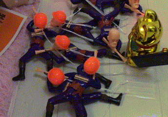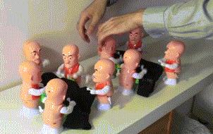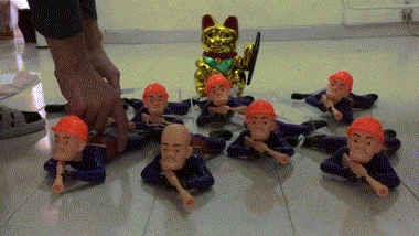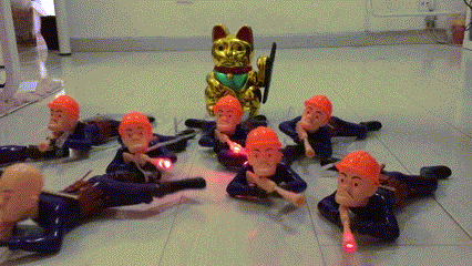 但这个当然也难不倒我,我到街上的小摊上买了一些小玩具,小爬兵。让它们这么爬着带我的招财猫往前进,很快就把这个问题克服了。