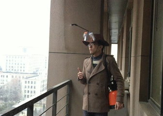 这两个加在一块,我们把它叫作风雨型防雾霾可穿戴设备,算是我的一个小发明。