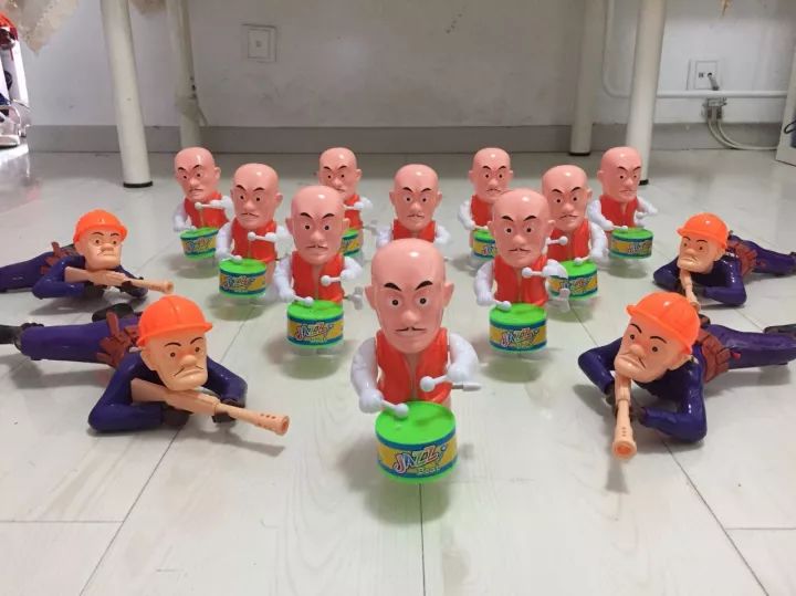 大家可能刚才已经见过它们了,就是那几个小爬兵朋友,它们都可以这么敲锣打鼓。我们先测试一下,让它们来这样打鼓洗袜子是一个什么样的效果。