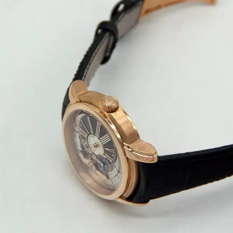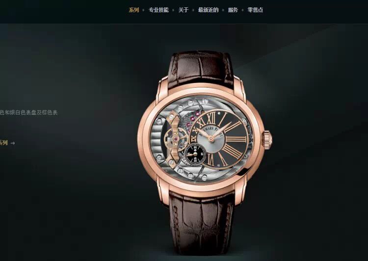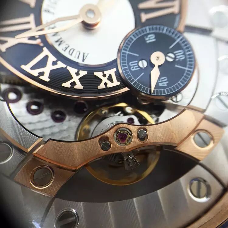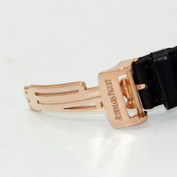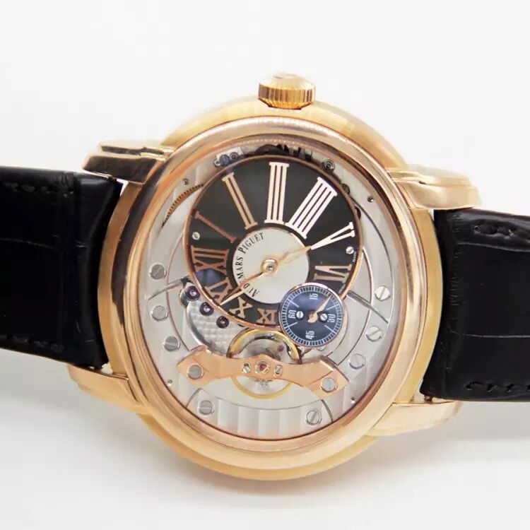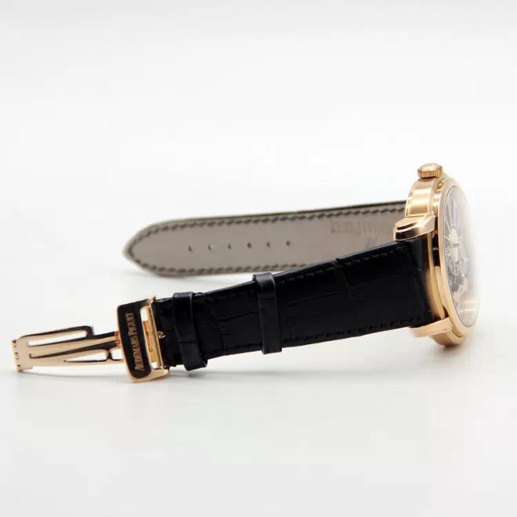 顶级名表AP爱彼(AUDEMARS PIGUET)千禧系列玫瑰金镂空偏心盘自厂芯男士机械腕表。