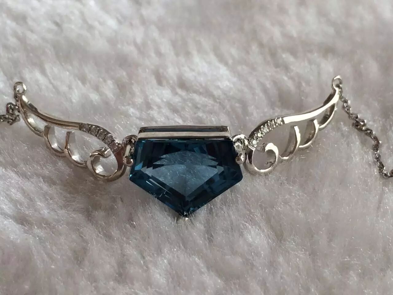 五边随型切割,双翅对称,犹如天使之翼,轻灵欲飞,仙气出尘。